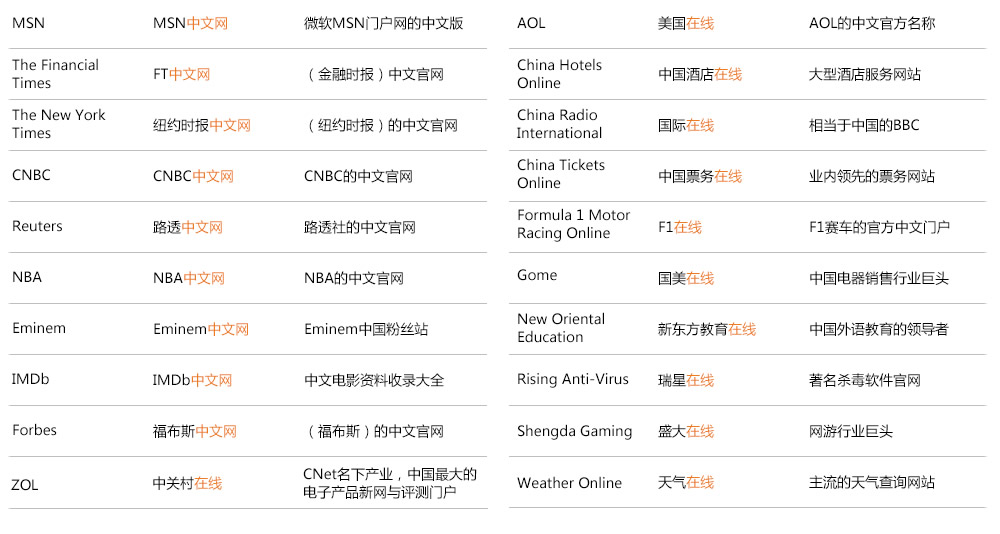 • 1、 与您品牌的中文本土化名称相匹配